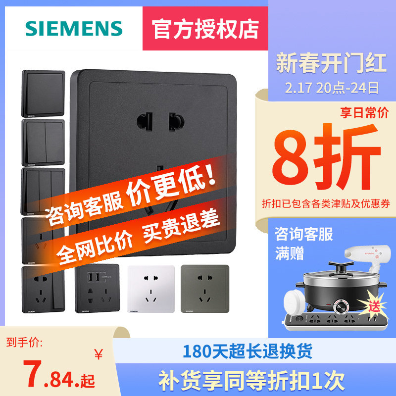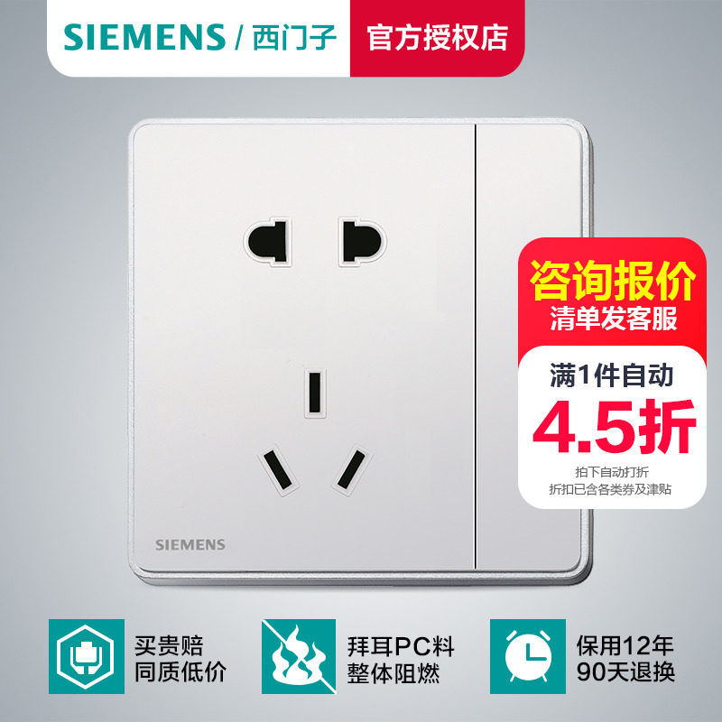 西门子开关插座致典白色一开五孔USB二开双控16A空调插座面板套餐