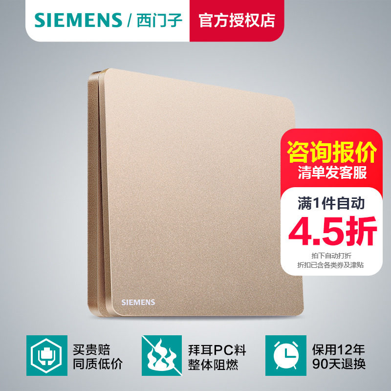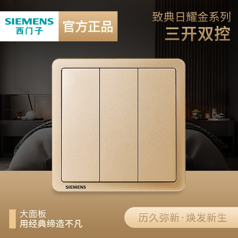 西门子一位双控开关带荧光致典日曜金色86型家用墙壁家用全屋套餐