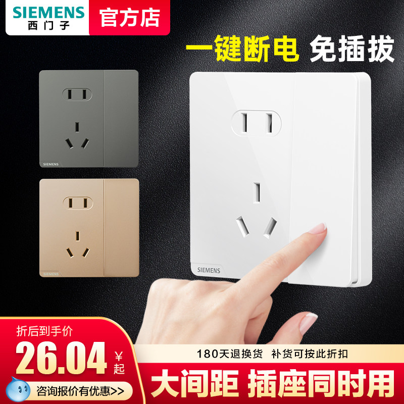 西门子一开五孔带开关插座双控面板皓彩白色一键断电新国标灰金色