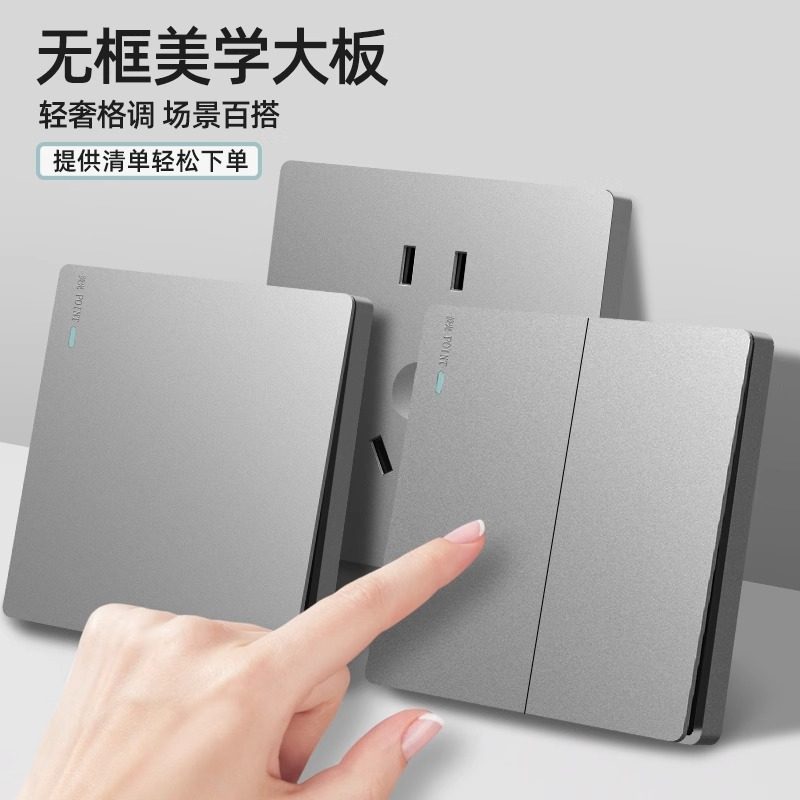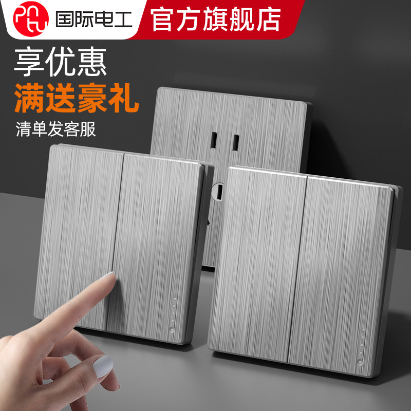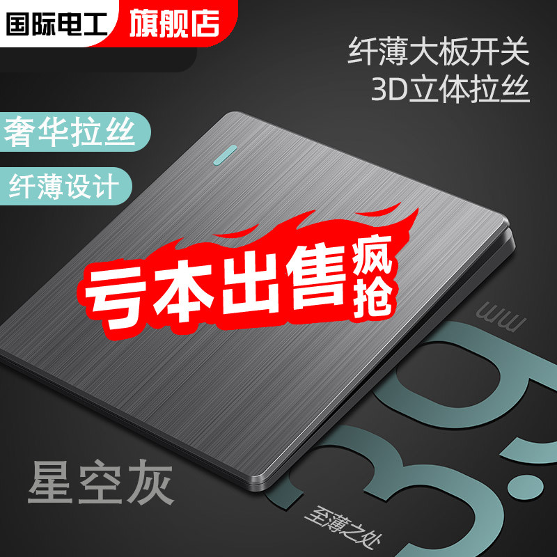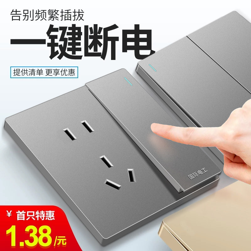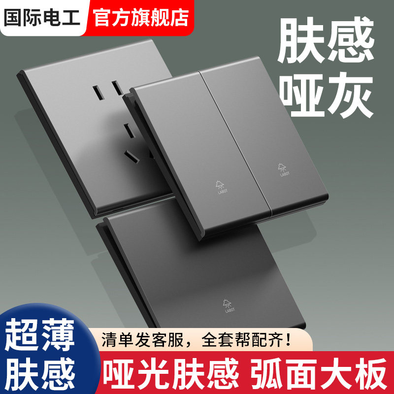 国际电工超薄灰色开关插座面板86型一开双控开关家用暗装五孔插座
