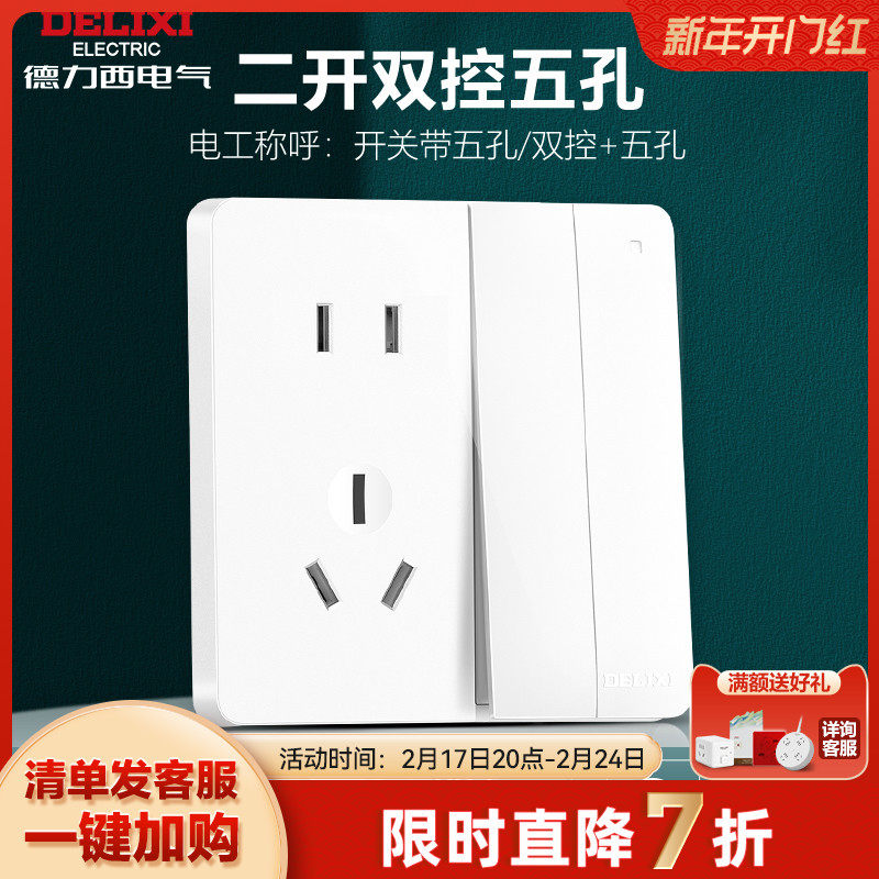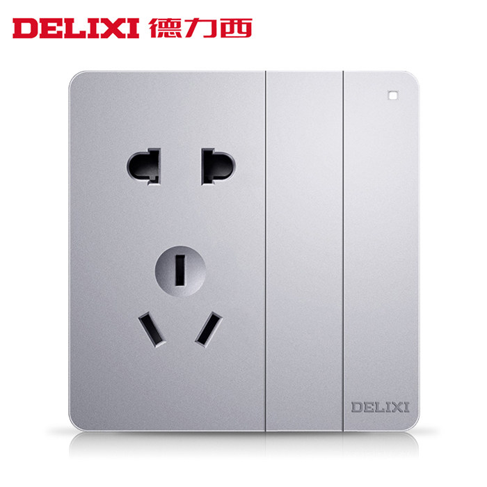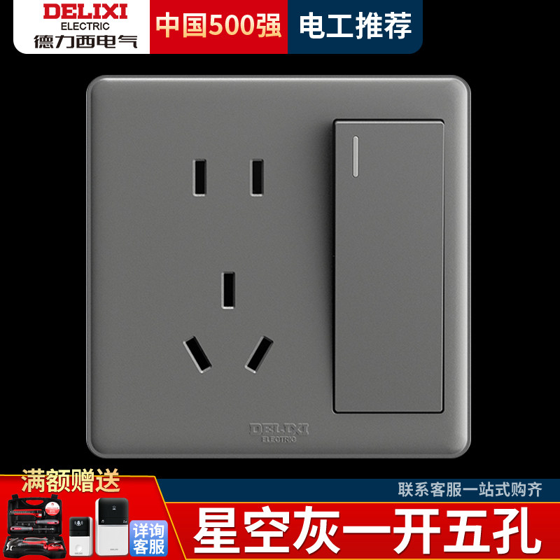 德力西带开关插座面板86型2二开五孔双控两开双开5孔银色灰色暗线
