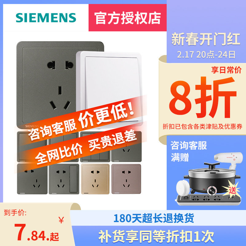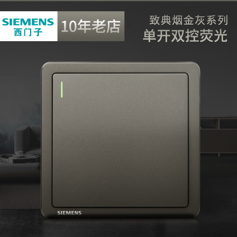 西门子单开双控开关带荧光致典烟金灰银色86型家用暗装全屋套餐