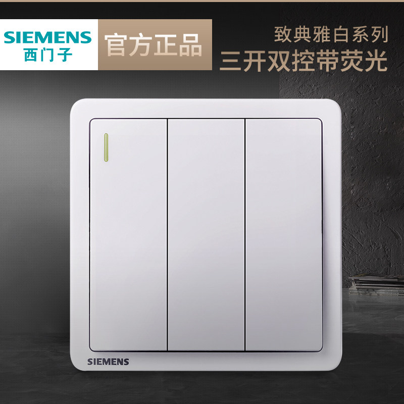 西门子三开双控开关 皓彩雅白色三开三联双控86型墙壁开关插座