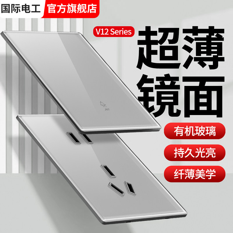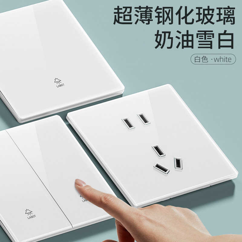 国际电工奶油风超薄一开双控开关插座面板钢化玻璃镜面86家用五孔
