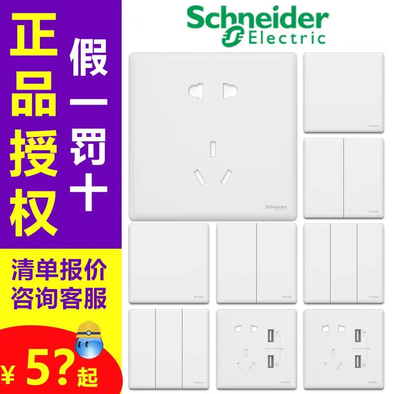 施耐德珍铂丝绒白开关插座家用一开双五孔面板官网USB单控双控16a