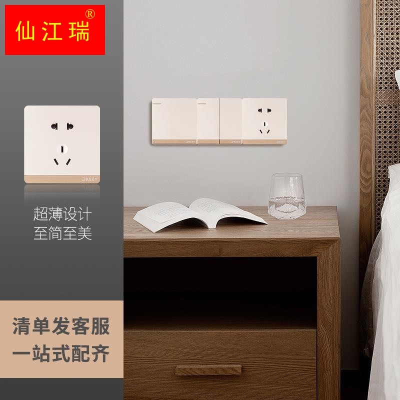 国际电工奶油风金色哑光开关插座家用暗装一开双控五孔超薄86面板