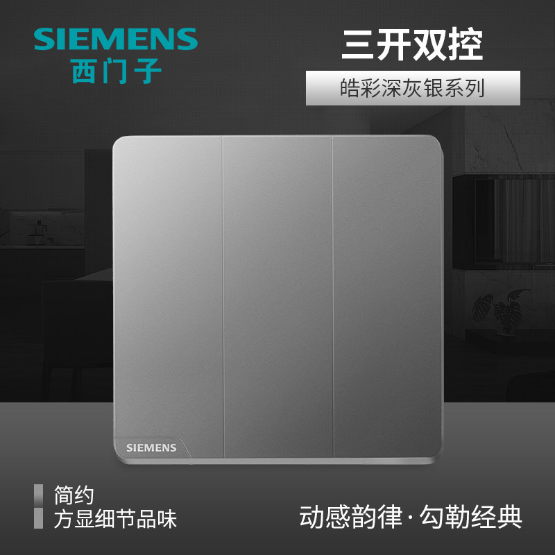 西门子三开双控开关 皓彩深灰银色三开三联双控86型墙壁开关插座