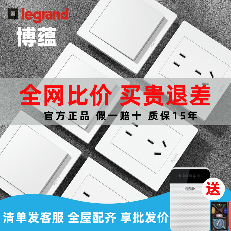 罗格朗博蕴开关插座面板白色一开双控五孔墙壁暗装空调电源插板16