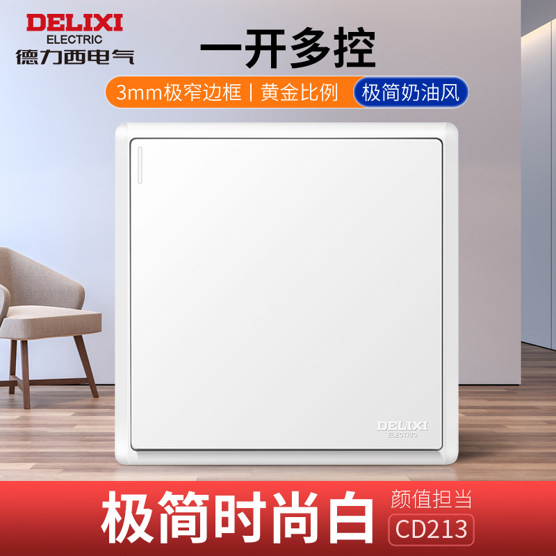 德力西官方旗舰店开关插座三位三开双控86型暗装家用大面板白色