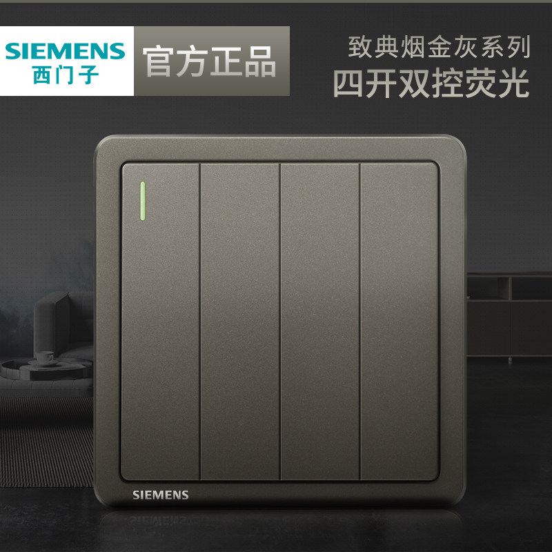 西门子四开双控开关带荧光致典烟金灰色86型家用暗装全屋套餐面板
