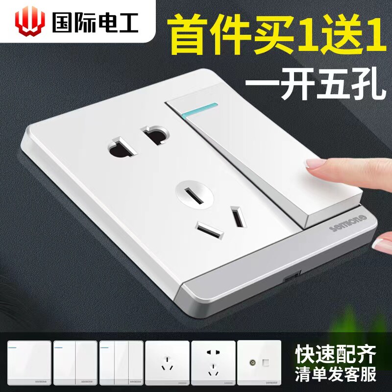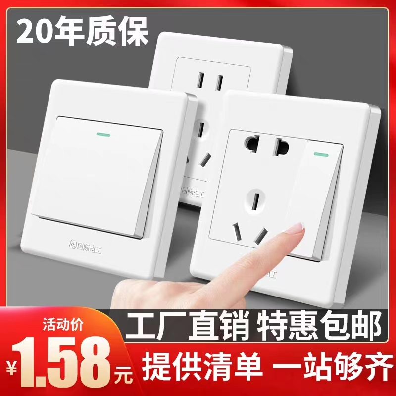 国际电工86型墙壁开关插座面板 家用一位单控一开双控带5五孔插座