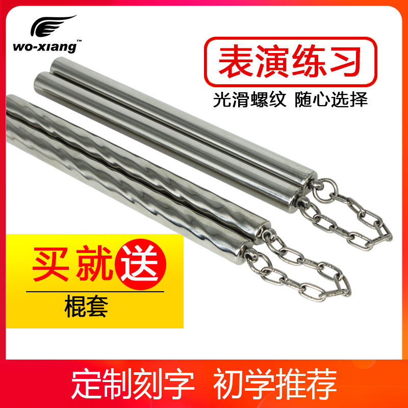 我翔螺纹双节棍表演棍练习双截棍有声不锈钢练习二节棍表演练习棍