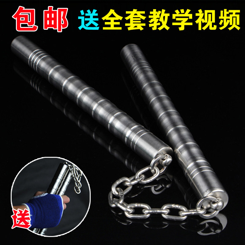 不锈钢双节棍跆拳道实战表演练习初学者防身双截棍送棍袋护掌刻字