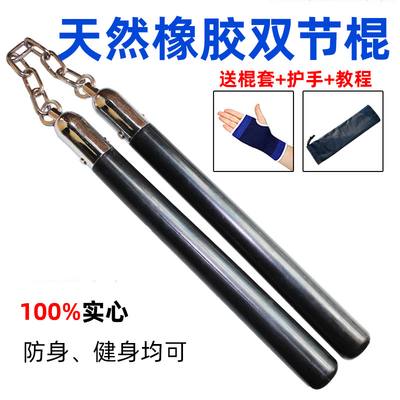 天然橡胶双节棍专业实心二节棍成人训练李小龙表演防身实战双截棍