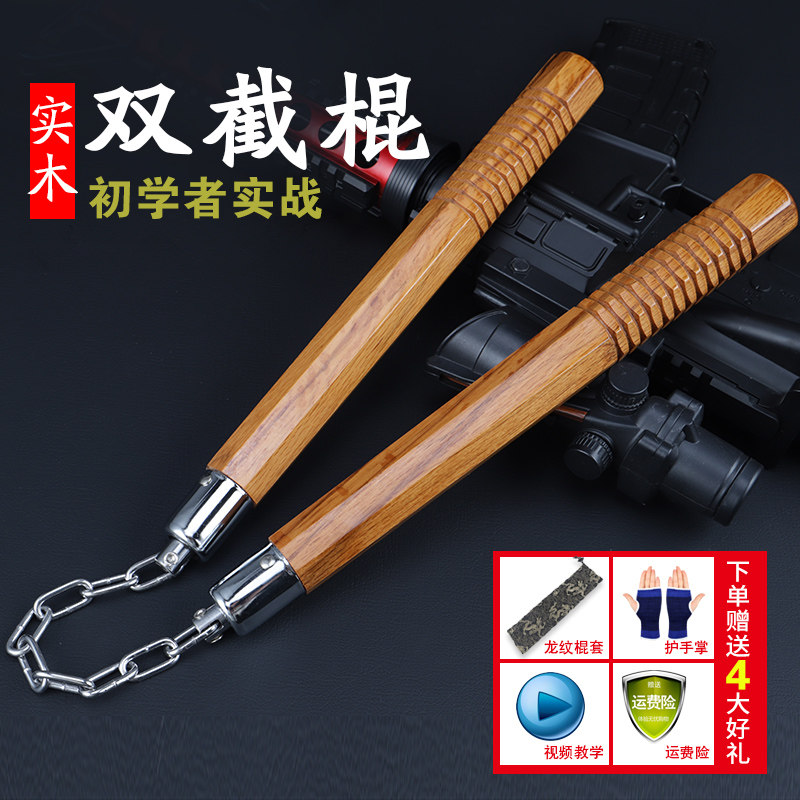 双节棍实木枣牛筋金白蜡六道成人一绳二棍实战防身安全检檀李小龙