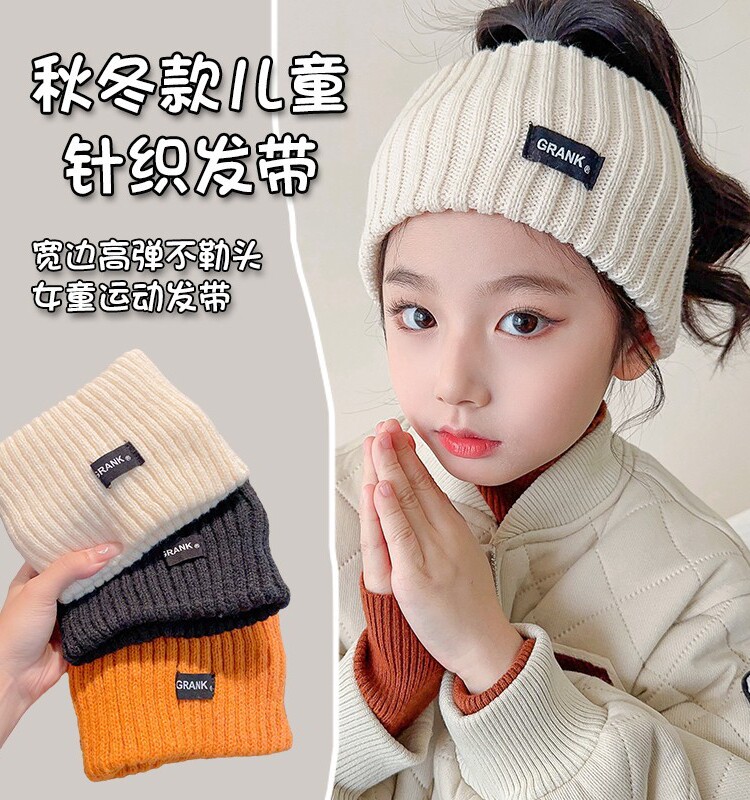 儿童帽子秋冬针织发带小女孩可扎高马尾运动护额头巾护耳保暖脑门