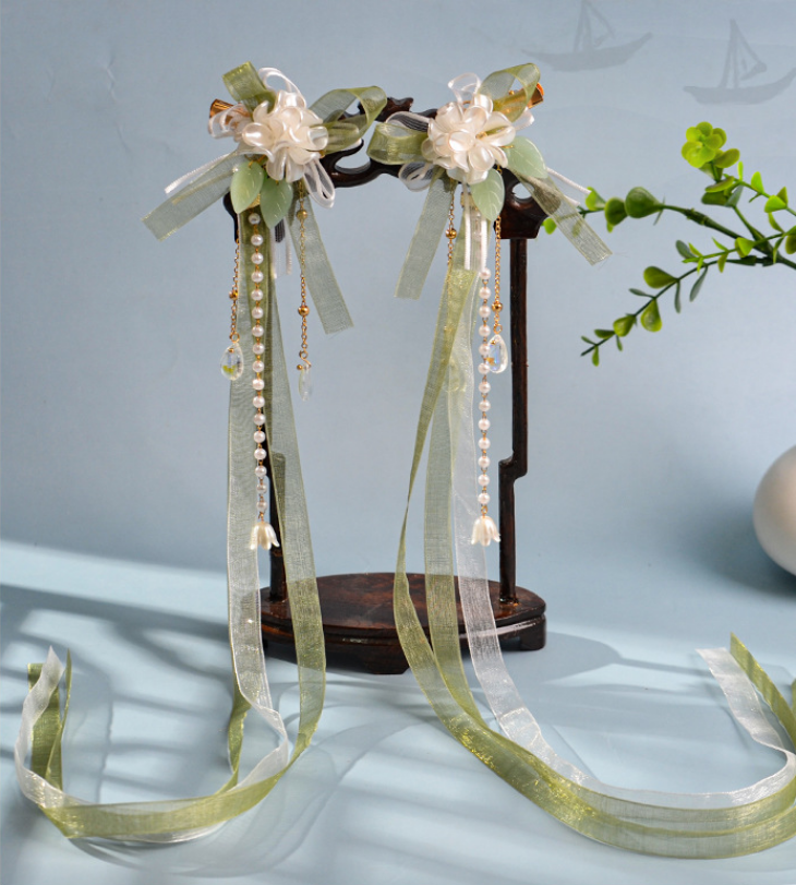 汉服头饰女中国风马面裙配编发飘带发簪小女孩新中式盘发发带发饰