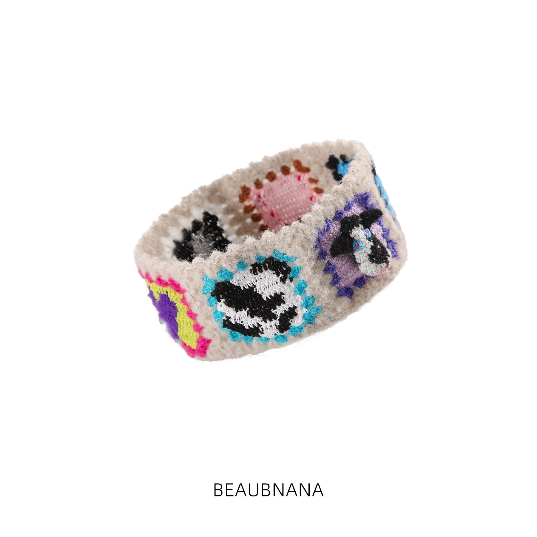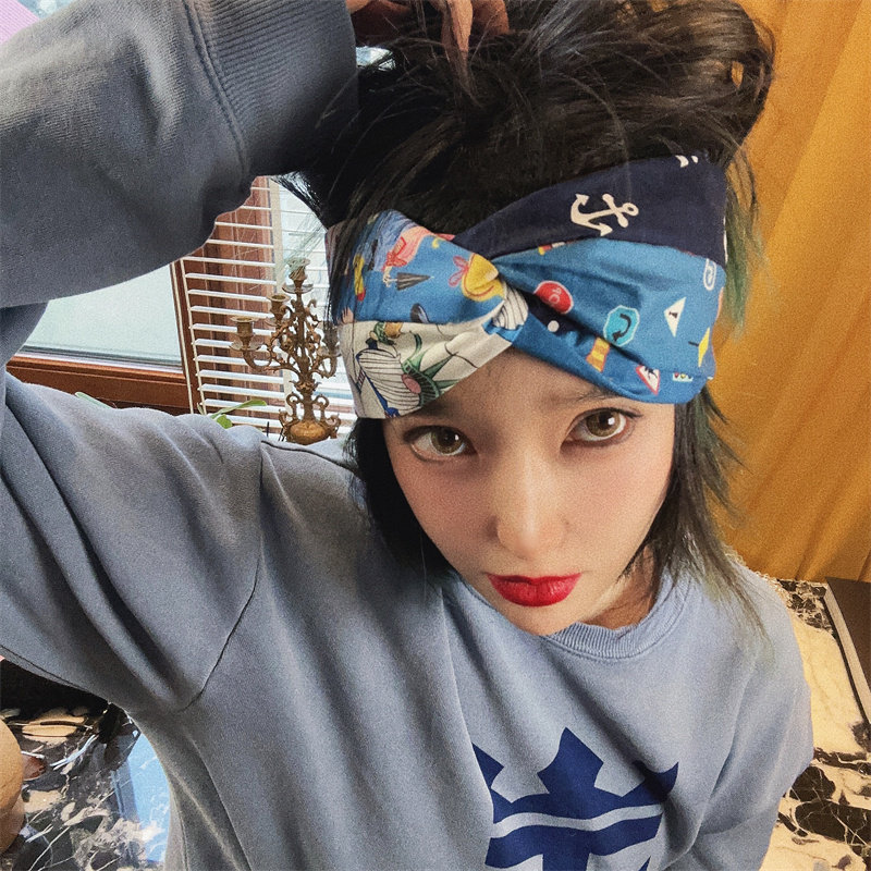 R&U 原创趣味卡通拼色进口纯棉布艺交叉瘦脸弹力发带头饰