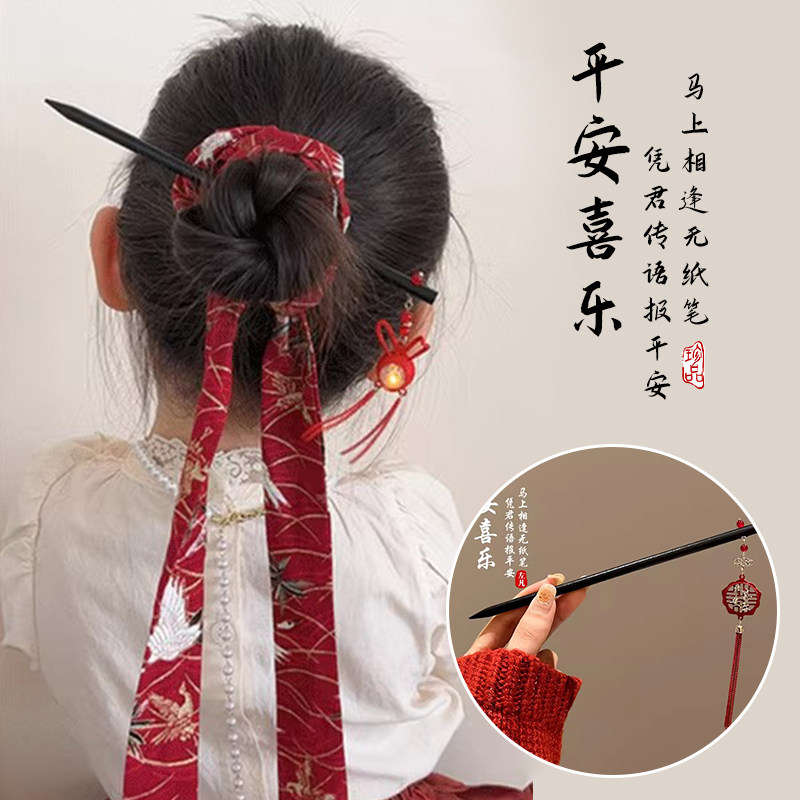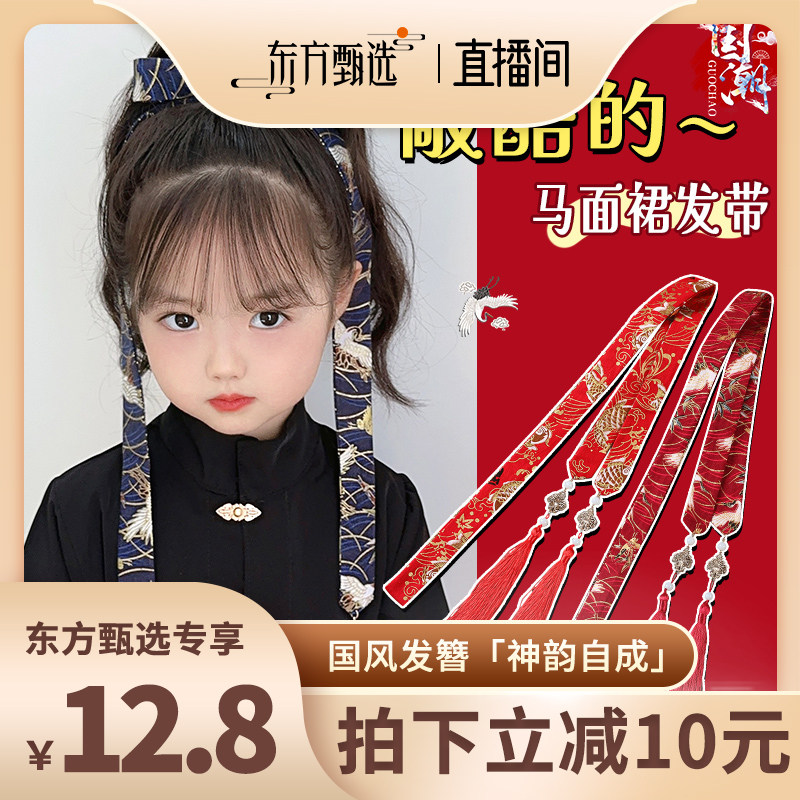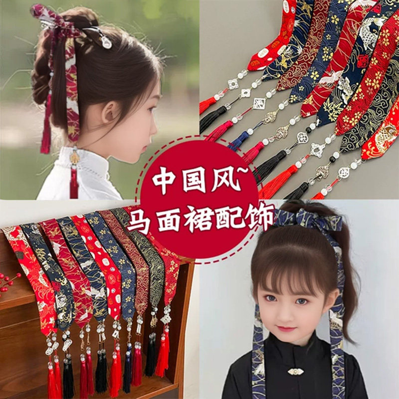 儿童古风汉服头饰女童中国风马面裙编发飘带发簪小女孩新中式发带