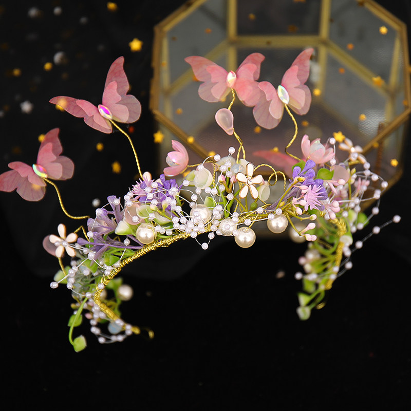 超仙美森系蝴蝶花环儿童公主头饰女童发带发箍小女孩演出主持花冠