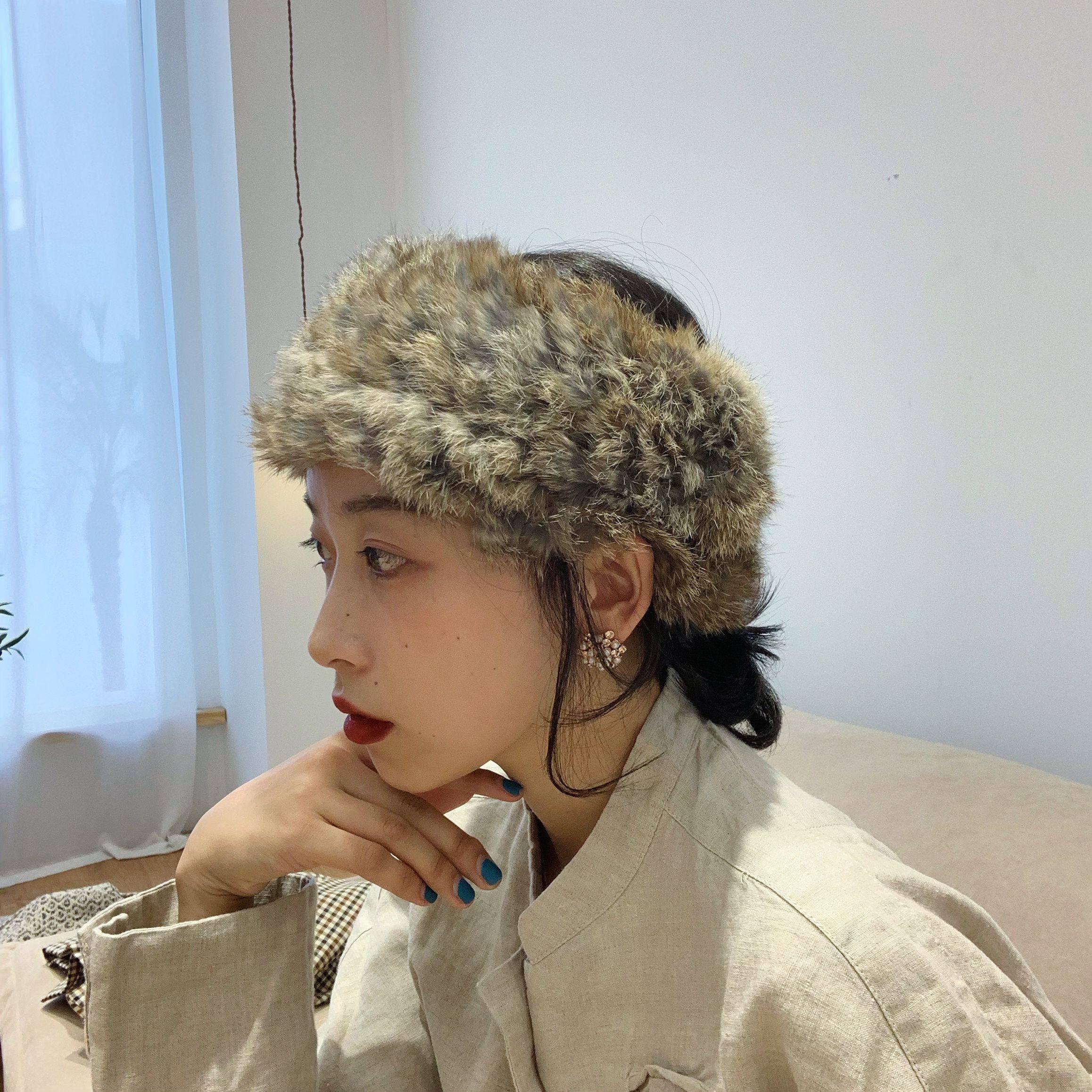 有钱小姐姐既视感~古着vintage风复古琥珀色真兔毛毛发带皮草发带