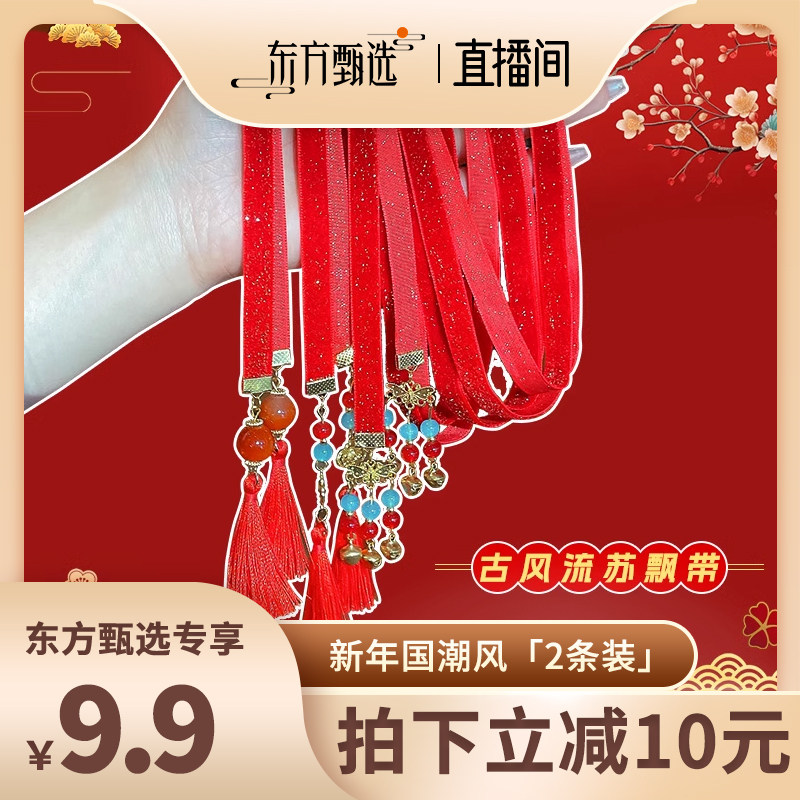 儿童古装汉服头饰红丝绒编发绳女童宝宝新年发饰飘带流苏头绳发带