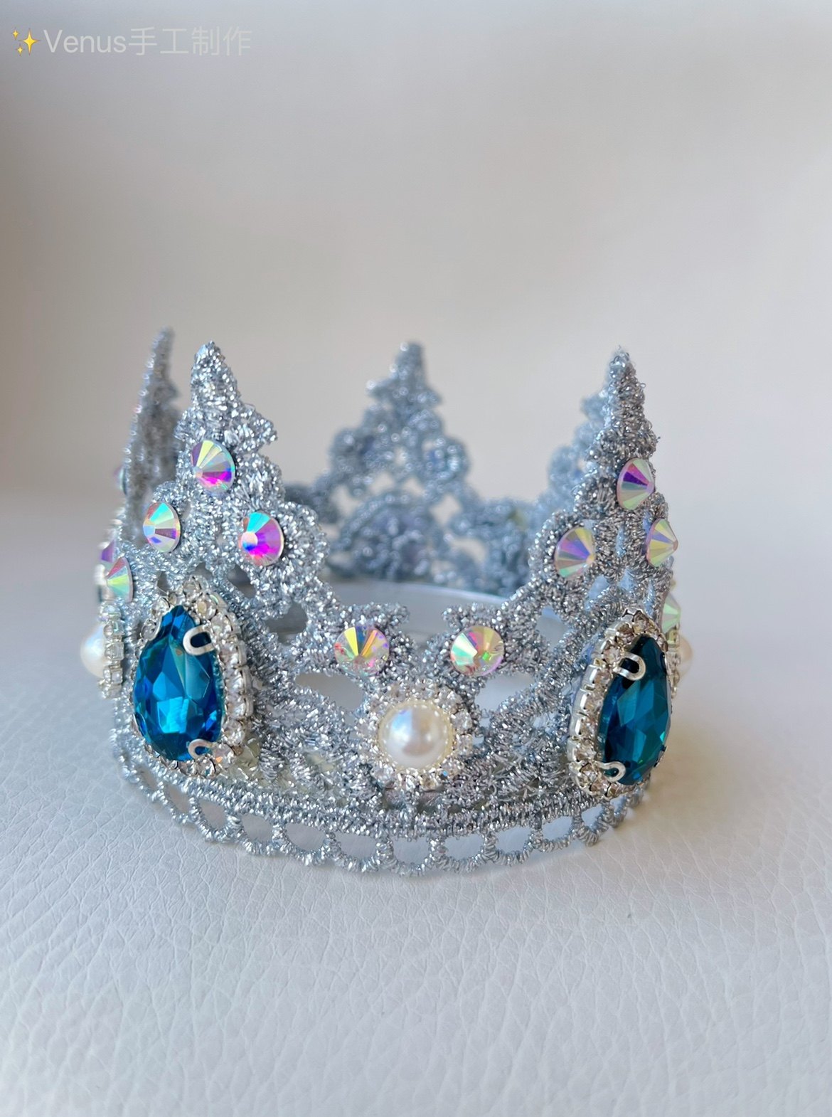 手工原创高档水钻皇冠儿童蓝色冰雪公主王冠发箍发夹宝宝发带头饰