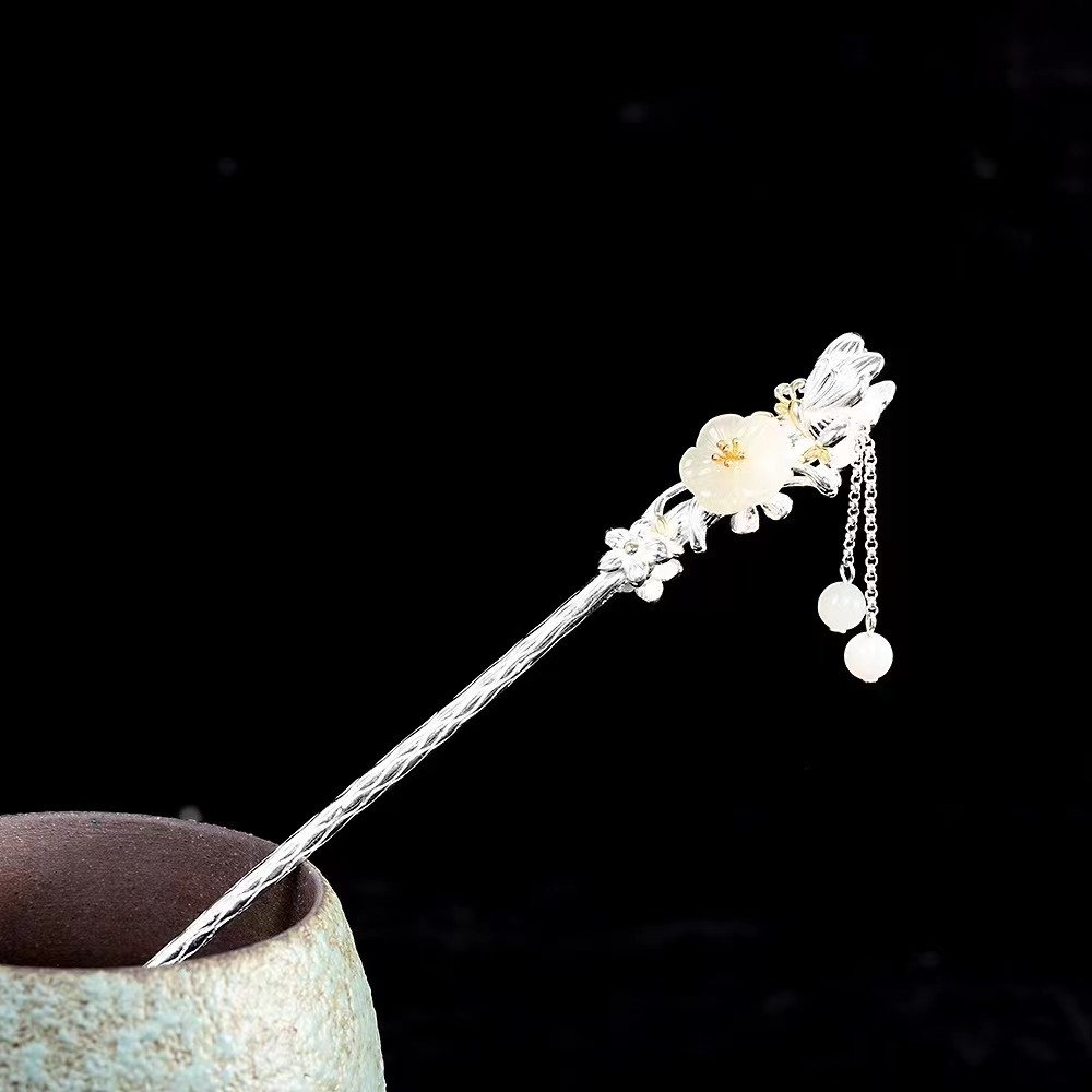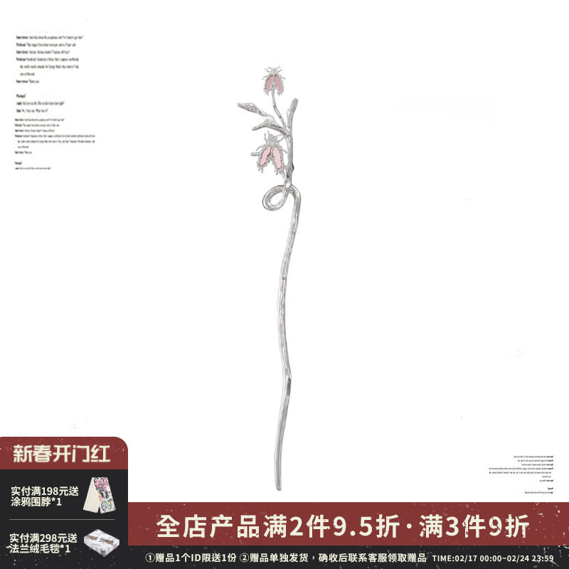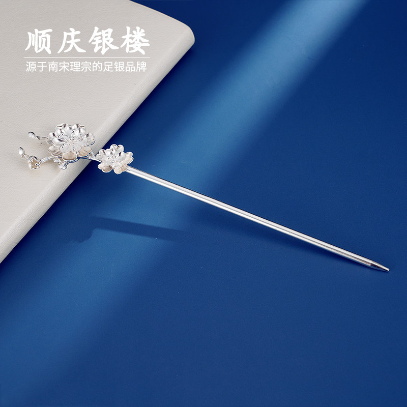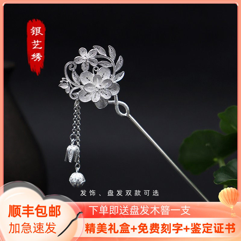 S999纯银盘发发簪女秋旗袍发饰古风十里桃花足银簪子发饰闺蜜礼物