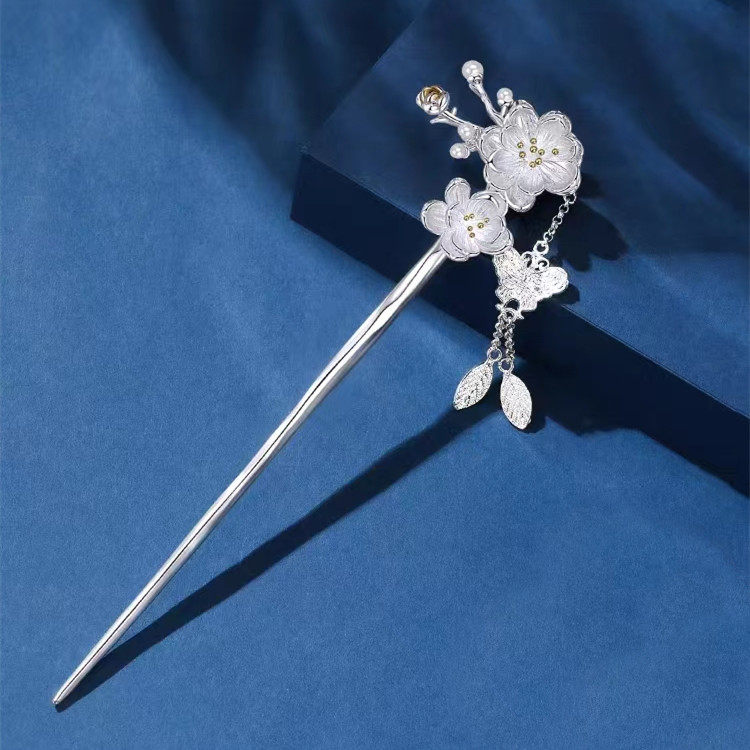 999纯银古风梅花步摇发簪花丝汉服盘发流苏簪子高级感礼物送女友