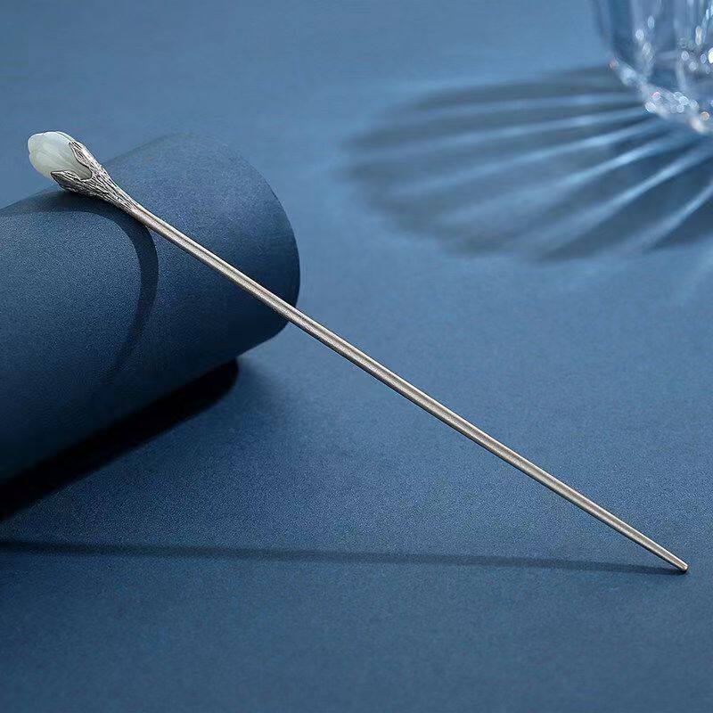 s925银发簪古风盘发簪子简约现代女旗袍汉服高级感和田玉汉服头饰