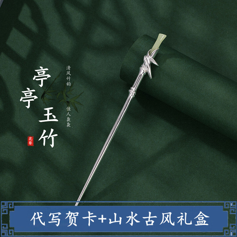 玉竹节925银发簪古风高级感新中式竹子发钗簪子可盘发银簪送女友