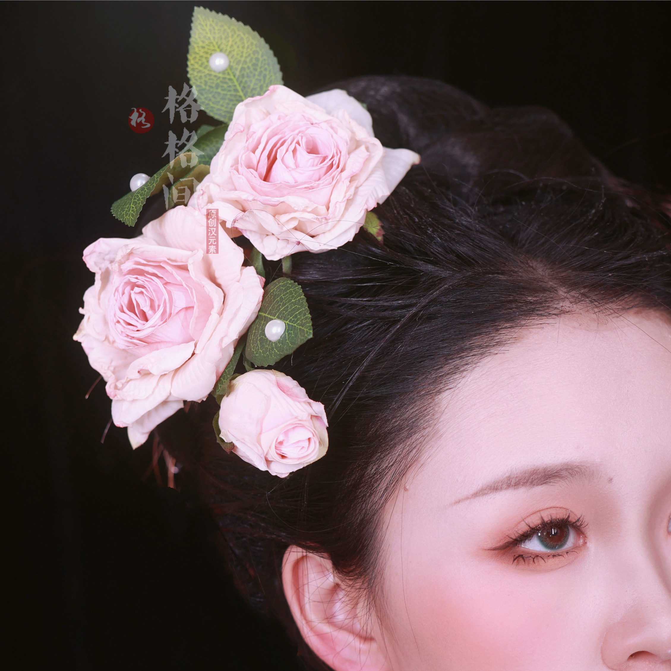 汉服小发钗古风发饰粉色流苏发簪古装盘发花朵簪子新中式旗袍头饰