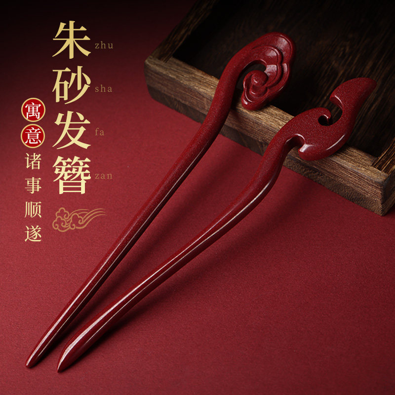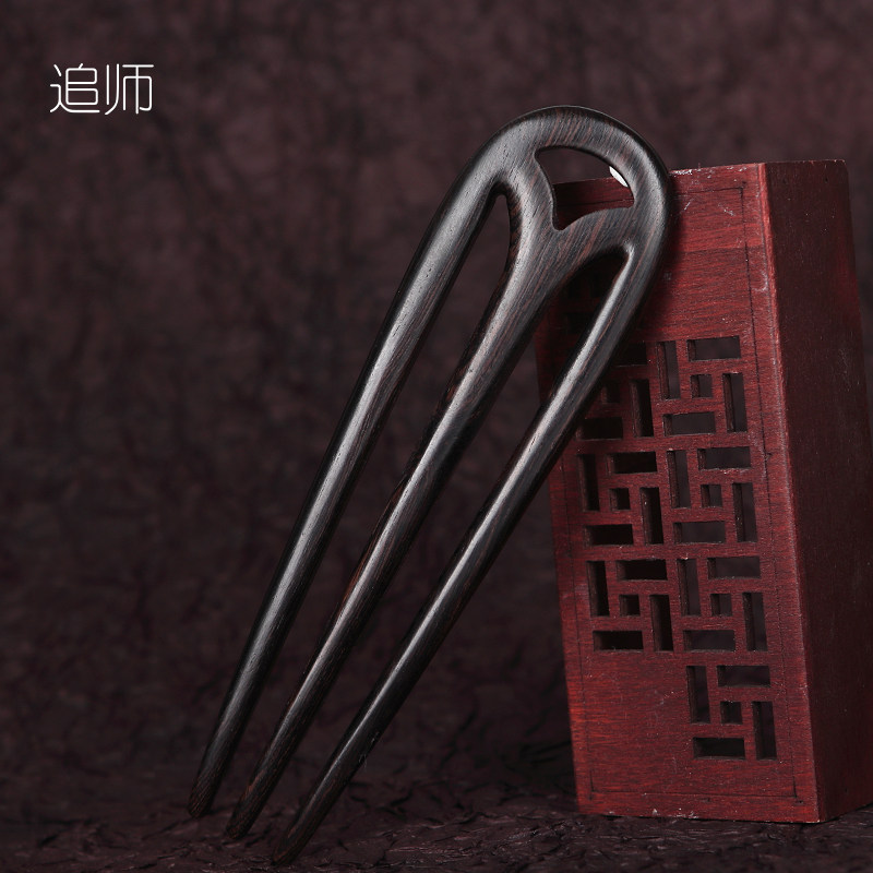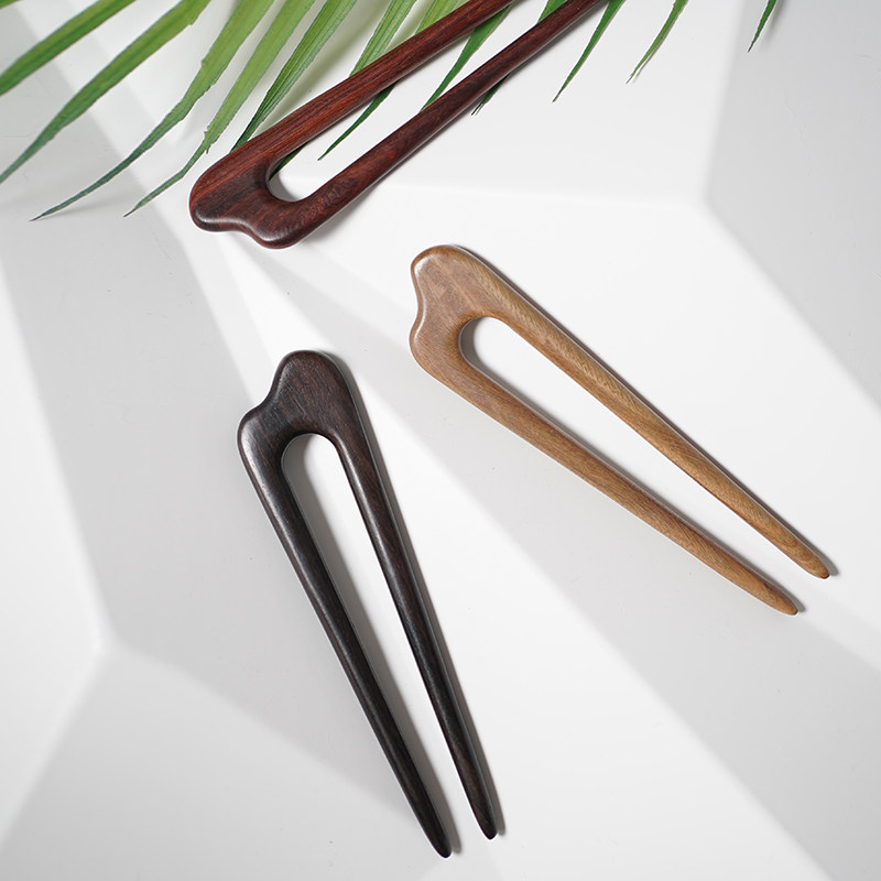 Zang又一雪 小山木钗 黑檀木发钗古典u型盘头挽绾发髻民族风簪子