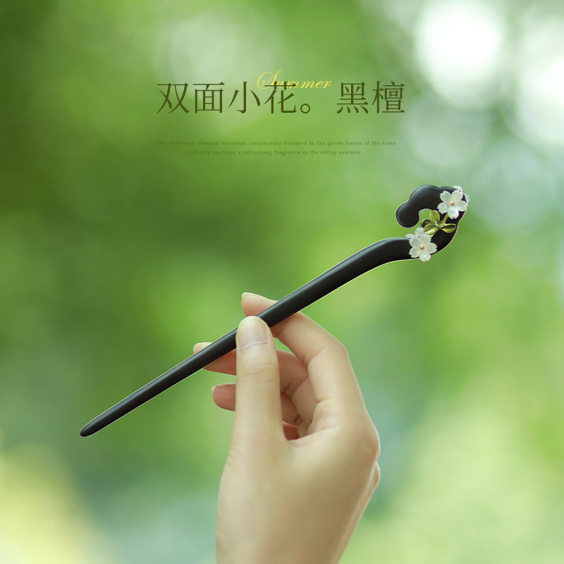 黑檀木发簪女古风高级感花朵簪子盘发简约现代气质汉服木簪子