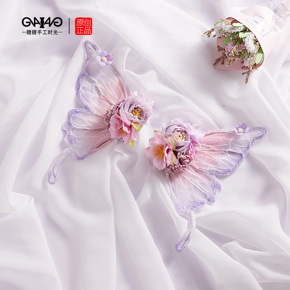 汉服双层刺绣蝴蝶发夹古风花朵网纱大蝴蝶发簪后压盘发拍照头饰发