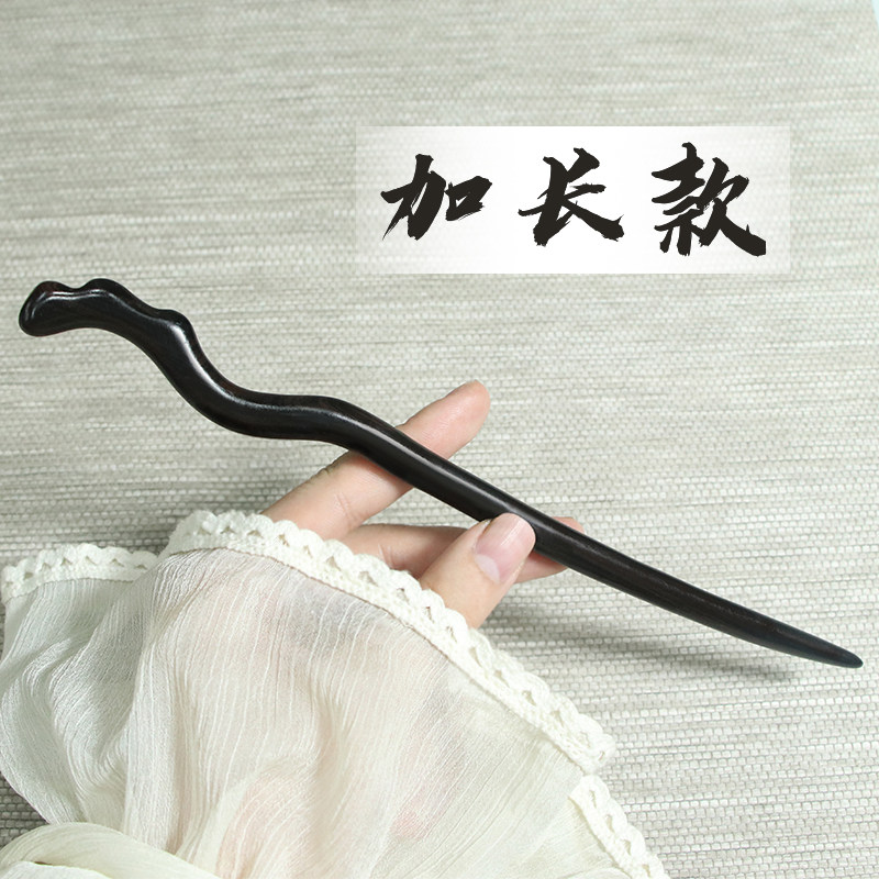 范士黑檀木加长款发簪子22CM超长盘发长发钗简约女汉服旗袍复古风