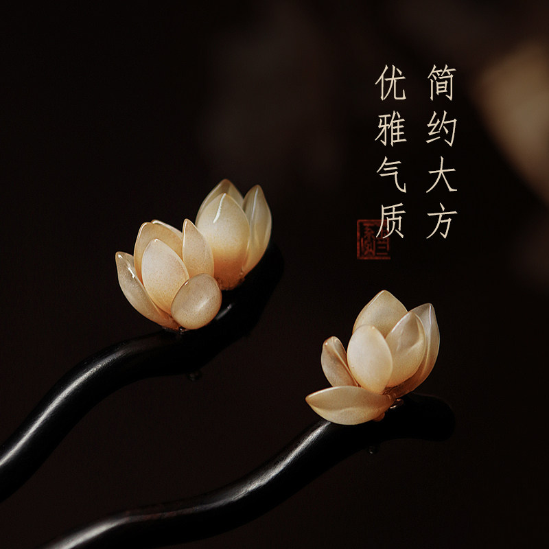 莲花 黑檀木簪子手工乌木古典发簪古风汉服配饰发钗创意盘头发饰