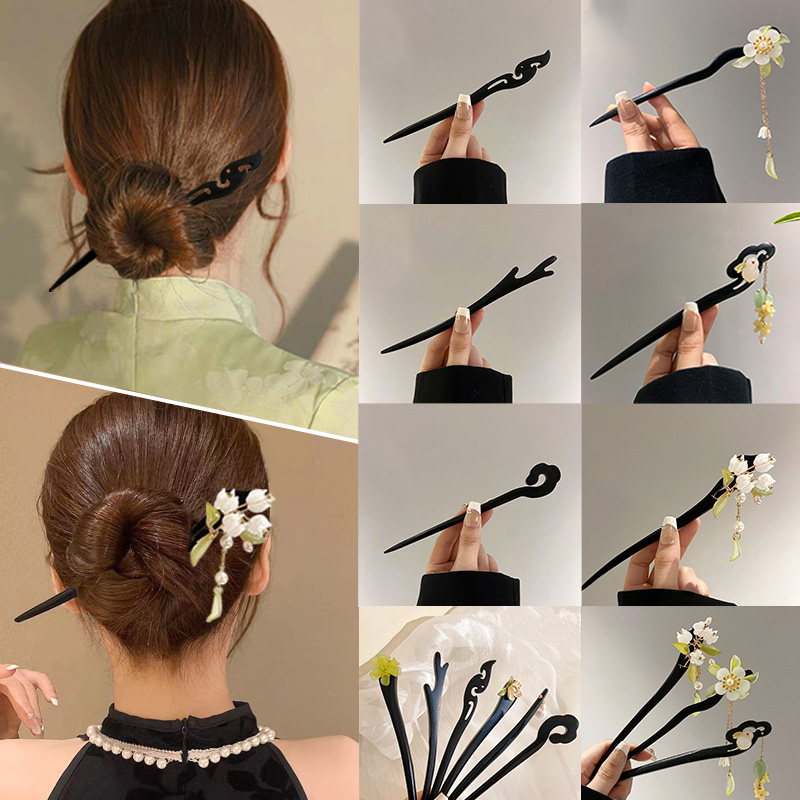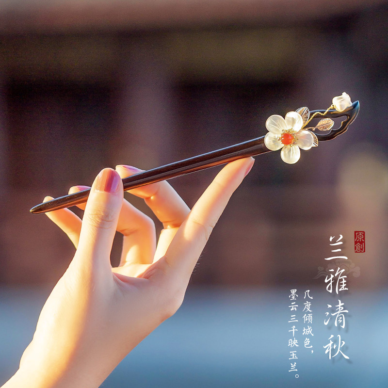 雅宋|空谷幽兰 原创简约雅致明月兰花加长天然黑檀木日常盘发发簪