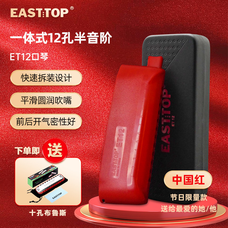 东方鼎一体式12孔半音阶口琴c调ET12初学者成人学生练习演奏专业
