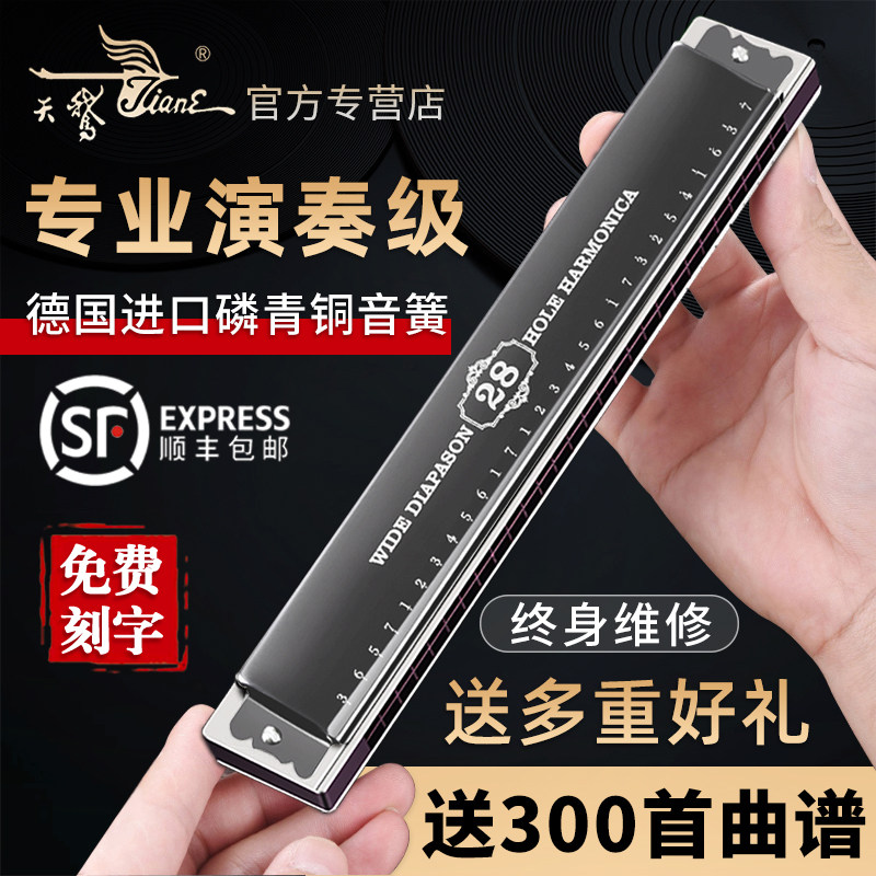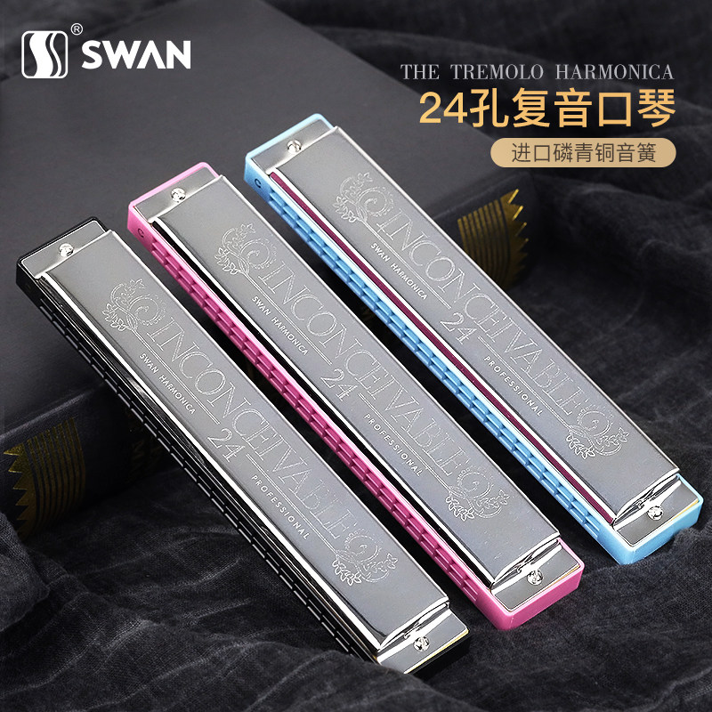 天鹅口琴24孔28复音C调正品初学者入门儿童男士风专业演奏级乐器