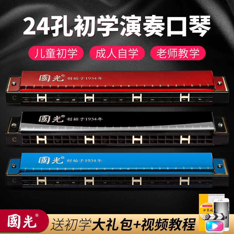 正品国光口琴28/24孔复音C调学生初学者入门儿童专业演奏旗舰店