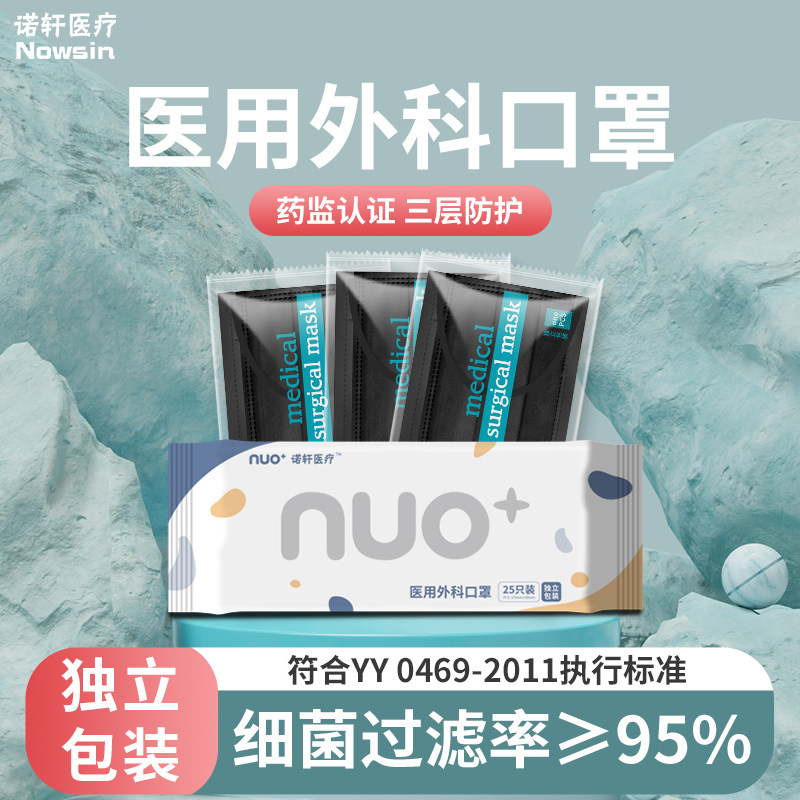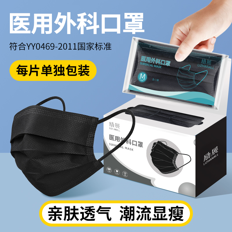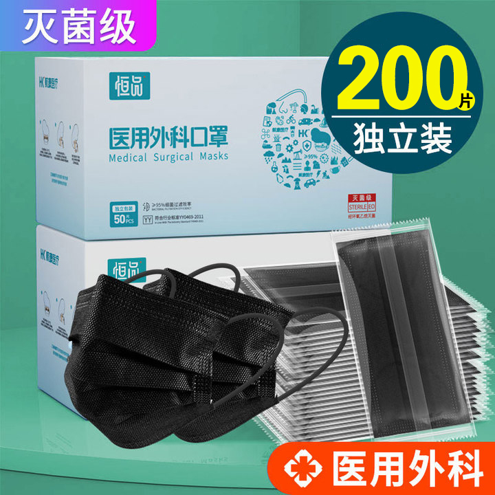 黑色医用外科口罩一次性医疗级三层正规正品官方旗舰店成人灭菌级