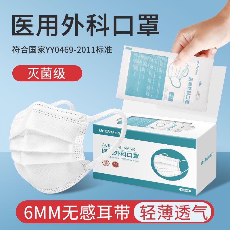 医用外科口罩一次性三层防护灭菌白色透气不勒耳成人独立包装
