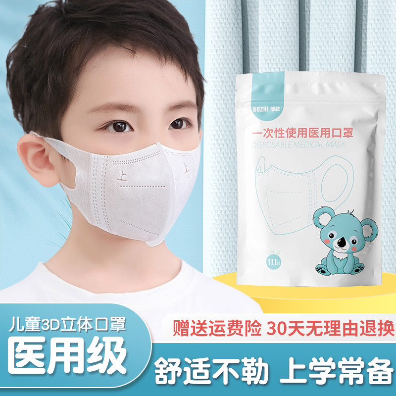 初医生儿童口罩3d立体一次性医用男童女孩8到12岁小孩3到6岁专用