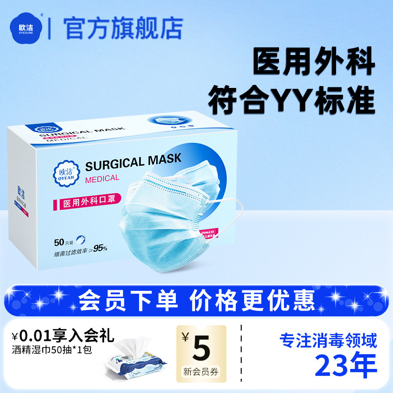 欧洁医用外科口罩三层成人灭菌口罩独立装口罩