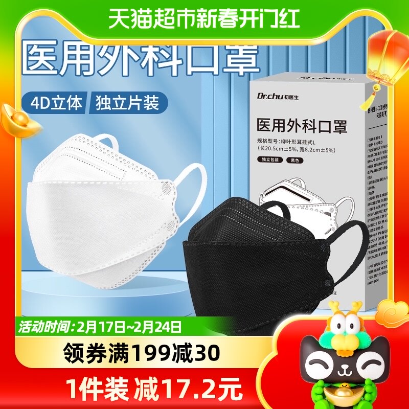 初医生蝶形口罩云朵女高颜值一次性医疗口罩白色医用外科秋冬季款