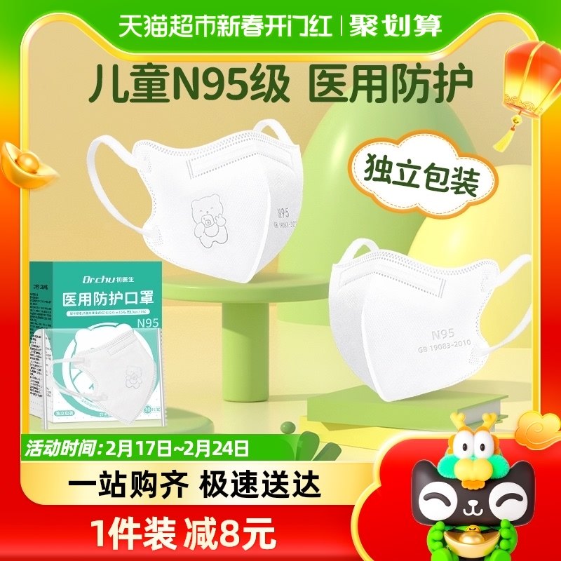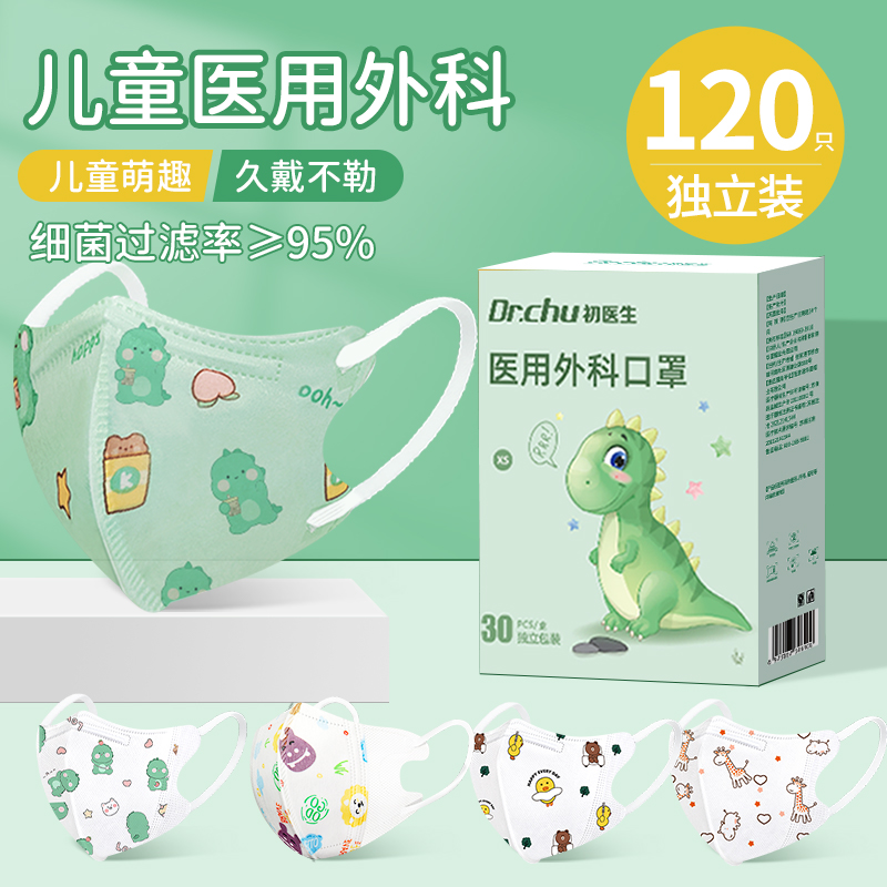 初医生儿童n95级医用防护口罩一次性医疗级别3D立体男童女孩专用K