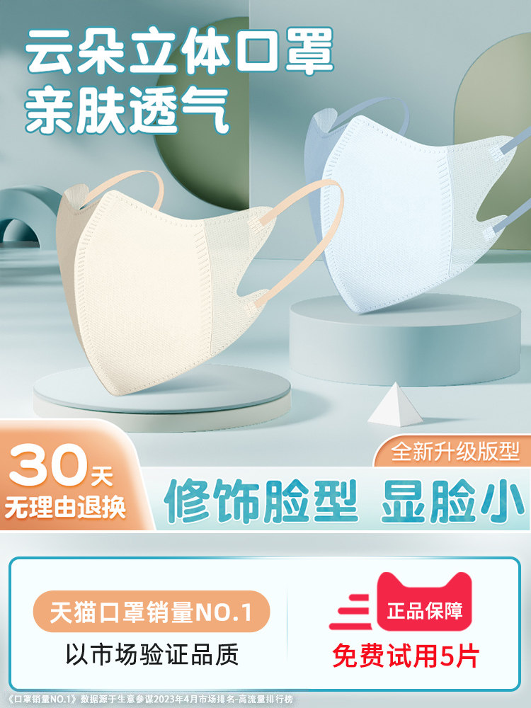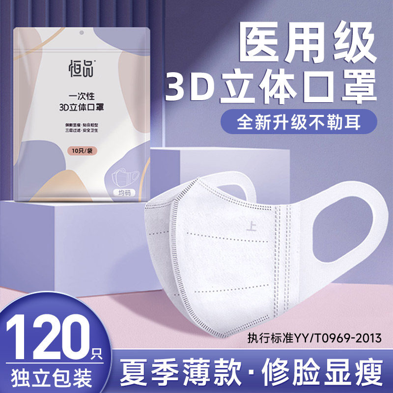 3d立体一次性医疗口罩医用女高颜值显脸小网红新款夏季薄款不勒耳