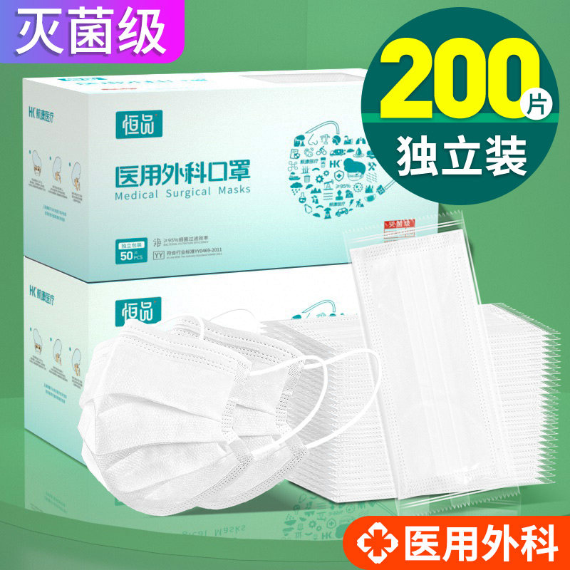 100只医用外科口罩一次性医疗三层正品正规灭菌级医护用成人2022