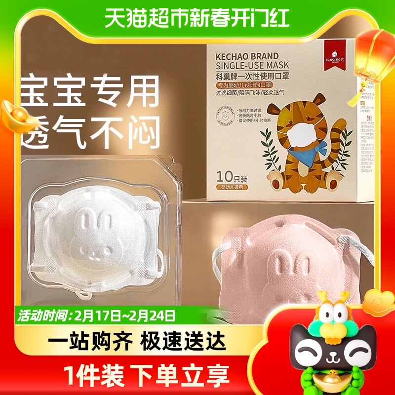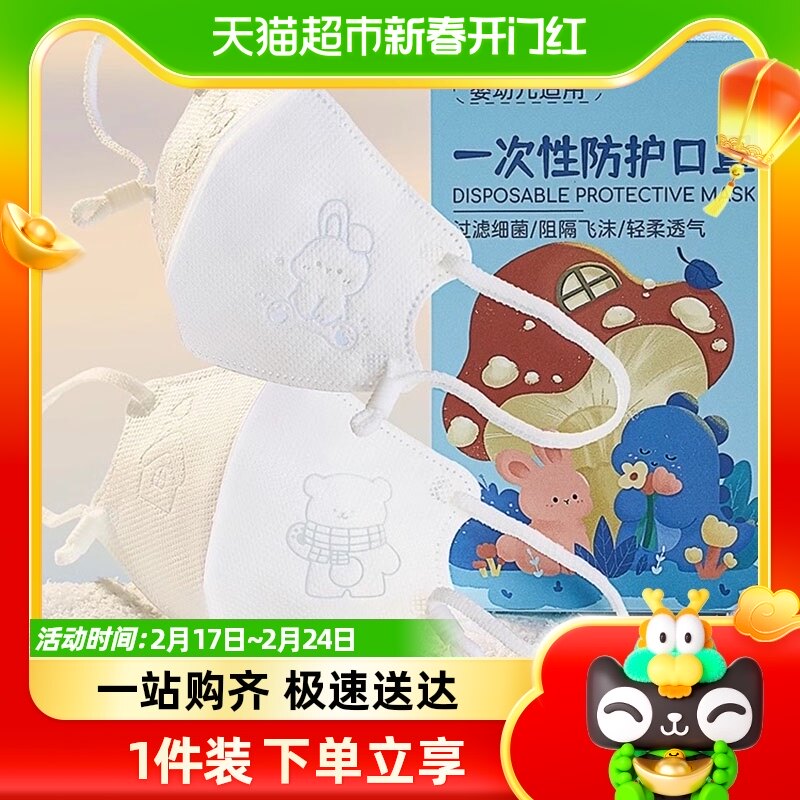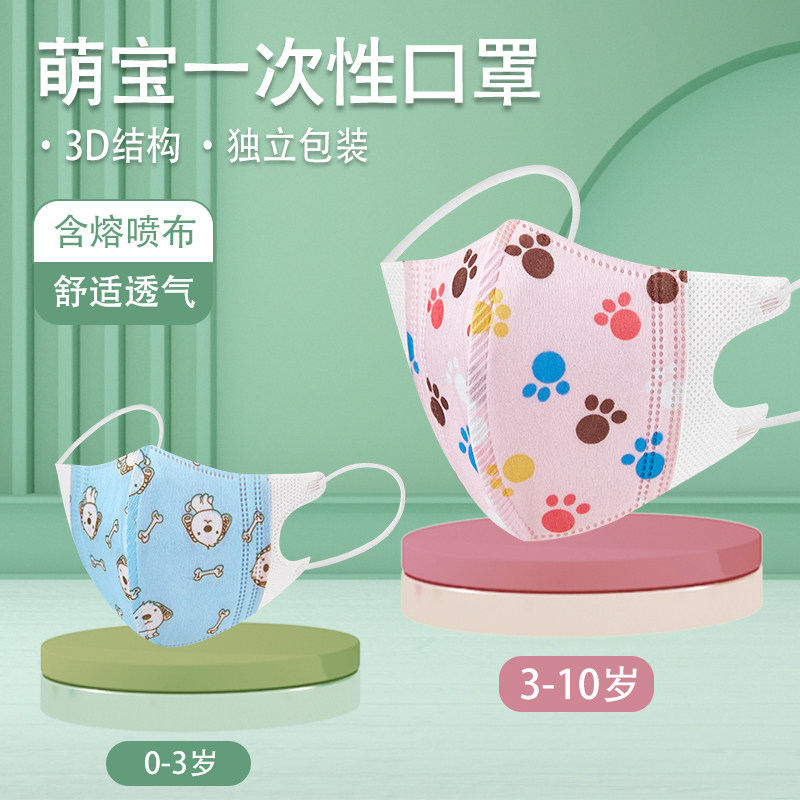 绿鼻子儿童口罩0-1.5岁婴儿宝宝一次性防护儿童专用3d立体口罩